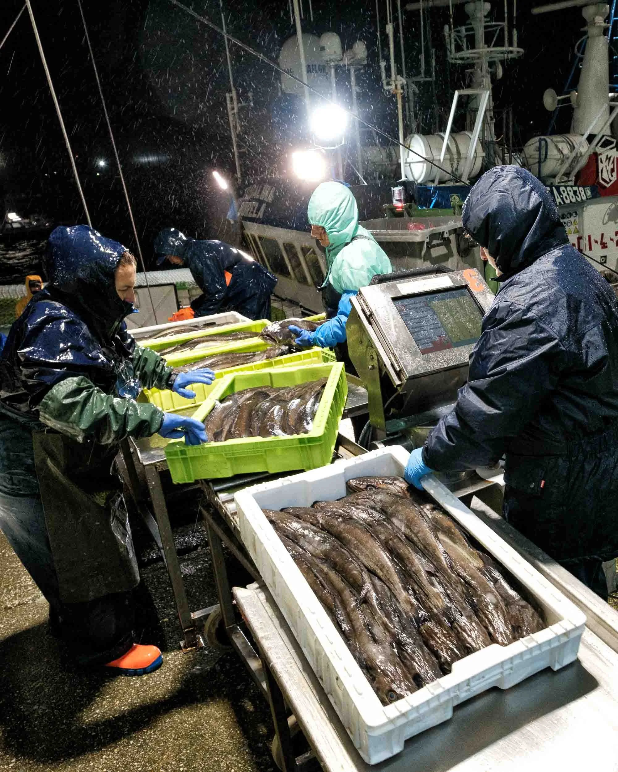 Unha vez chegan os barcos de marea coas capturas para a sùa venta,comeza o papel das empacadoras ou clasificadoras de peixe. Estas mulleres traballan sempre pola noite clasificando o peixe dos barcos do pincho, volanta e arrastreros de altura.